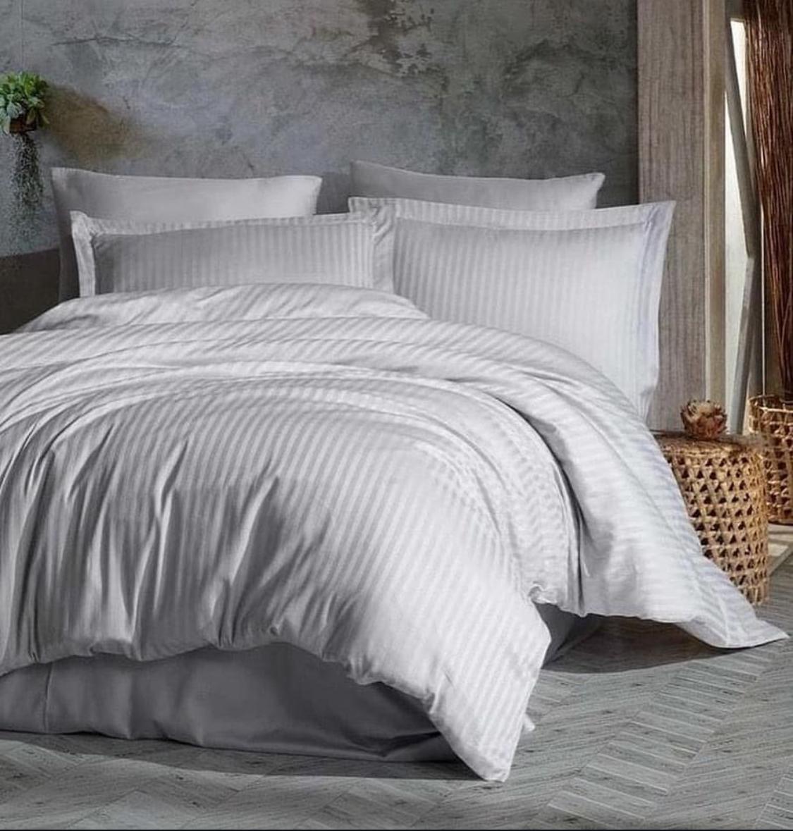 أضف لمسة من الصفاء والانتعاش إلى غرفة نومك مع طقم اللحاف الأبيض المصمم بخطوط سترايب هادئة تمنحك إحساسًا بالراحة والهدوء. الخامة المختارة توفر دفئًا مثاليًا في الشتاء، مع ملمس ناعم يضفي إحساسًا بالترف والبساطة