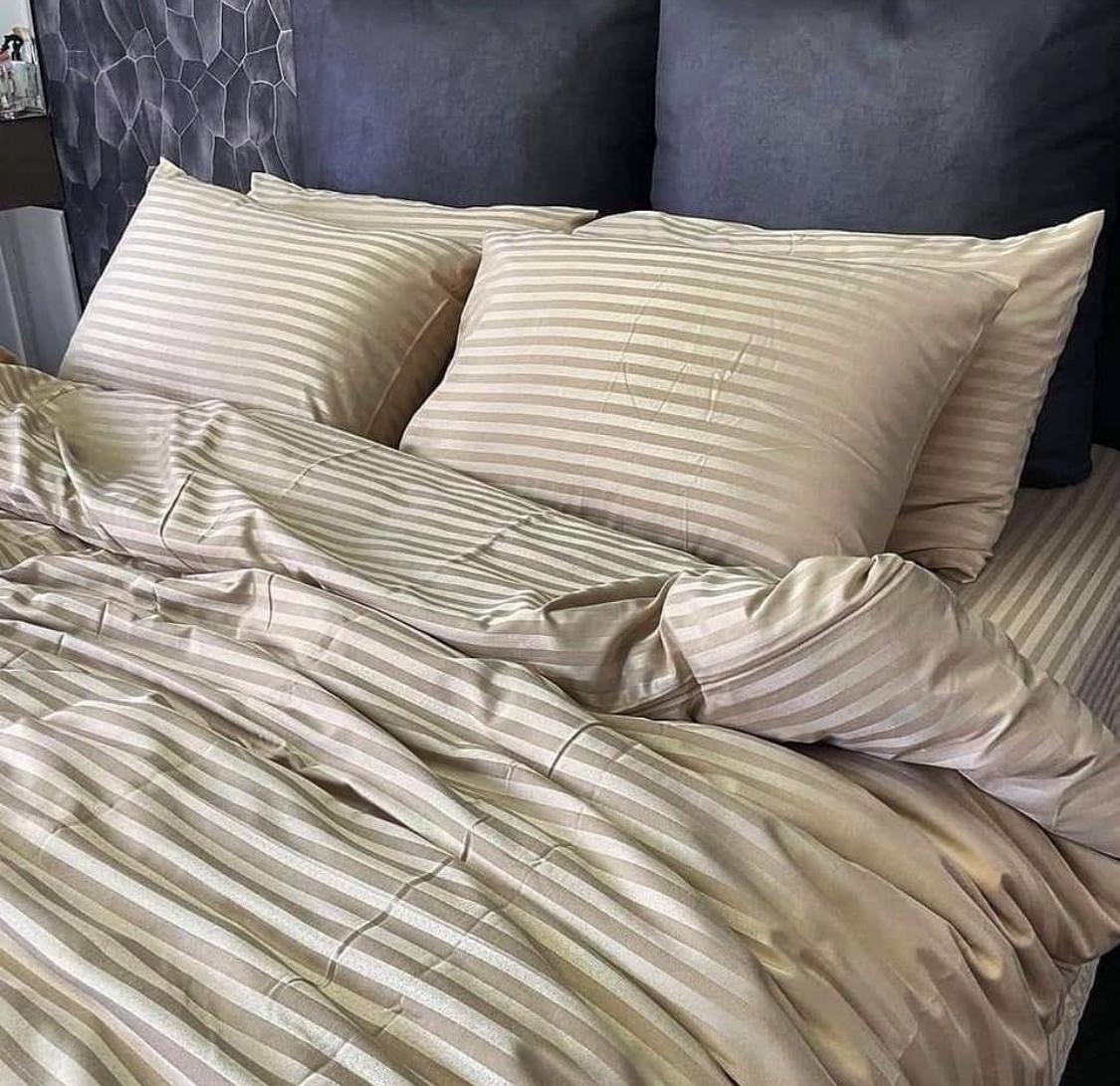 استمتع بتجربة نوم راقية مع طقم اللحاف البيج المصمم بخامة ساتان لامعة ونقشة خطوط ناعمة تضفي لمسة من الفخامة والسكينة. يجمع هذا الطقم بين الأناقة والراحة، ليمنح غرفتك طابعًا دافئًا ومتناغمًا.