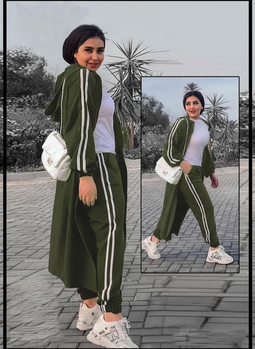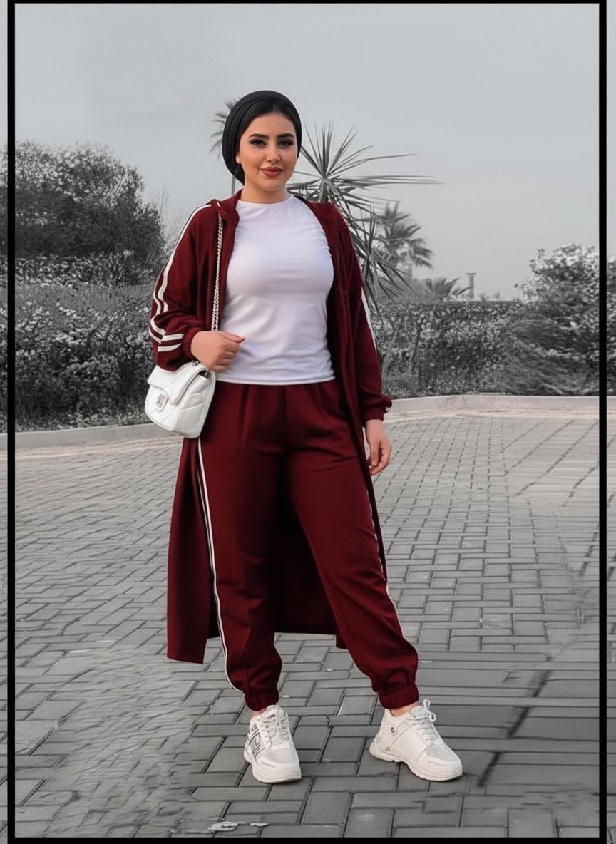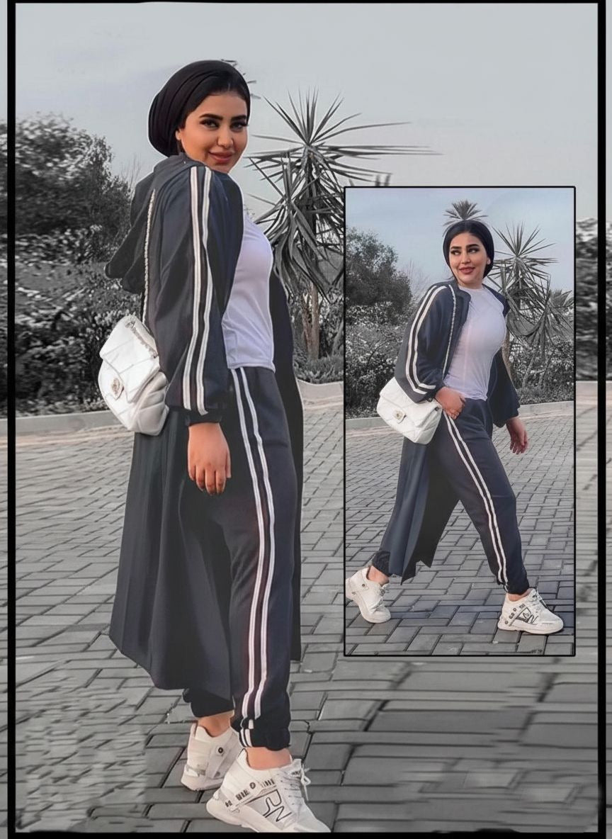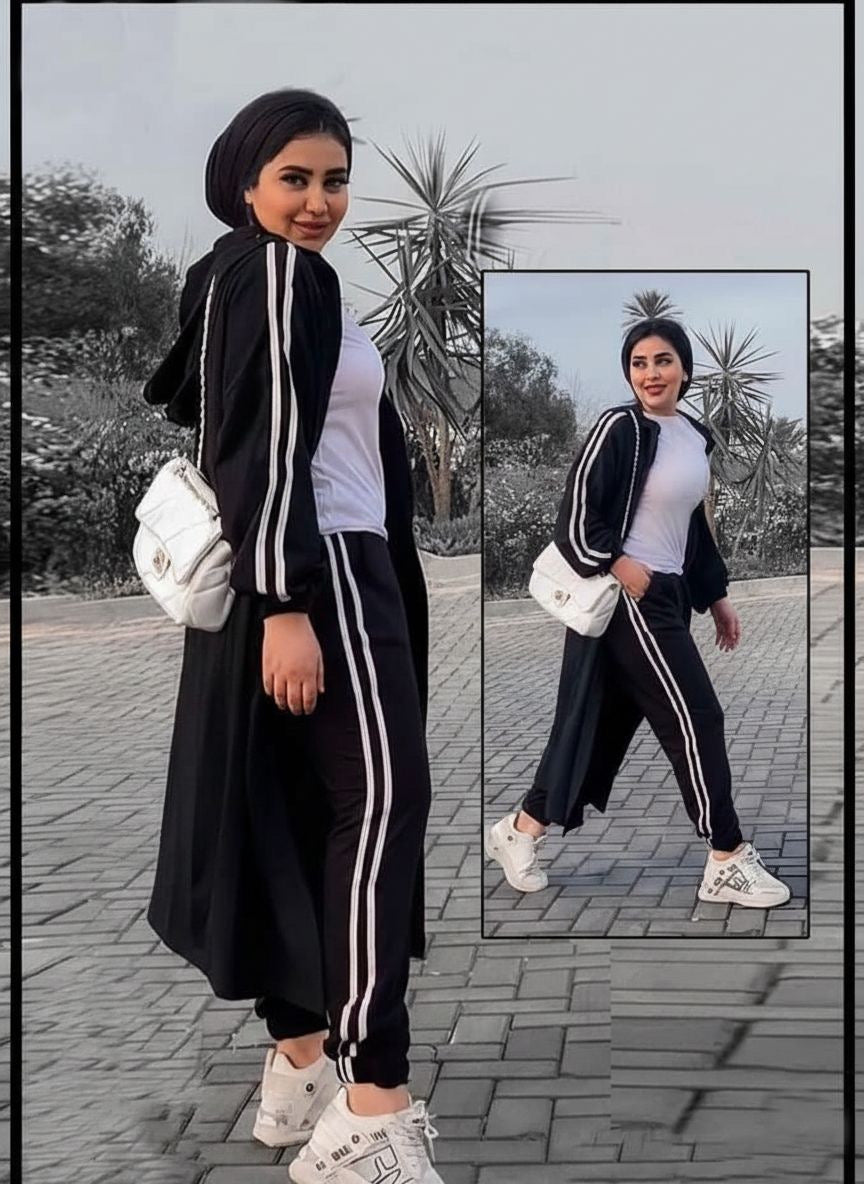 Make your outings unforgettable with our 3-piece suit, featuring a cozy cardigan, a trendy top, and sleek pants. The crisp white lines on the cardigan and pants add a fresh, modern twist to this elegant set. Perfect for strolls in the park, coffee dates, or casual meetups, this suit combines comfort and style effortlessly. Step out in confidence and enjoy every moment in fashion-forward comfort.