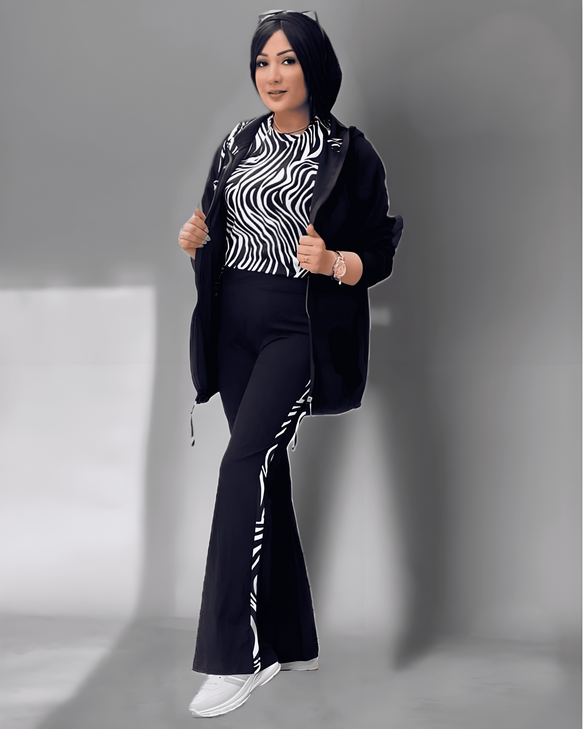 Upgrade your summer wardrobe with this premium 3-piece imported Summer Milton set, featuring a chic zebra-print top, lightweight jacket, and wide-leg trousers. Its breathable, soft fabric ensures a cool and sophisticated silhouette, perfectly blending modest fashion with a bold, modern aesthetic. Designed for the contemporary woman, this durable ensemble offers the ultimate mix of elegance and comfort for a stylish, must-have seasonal look.