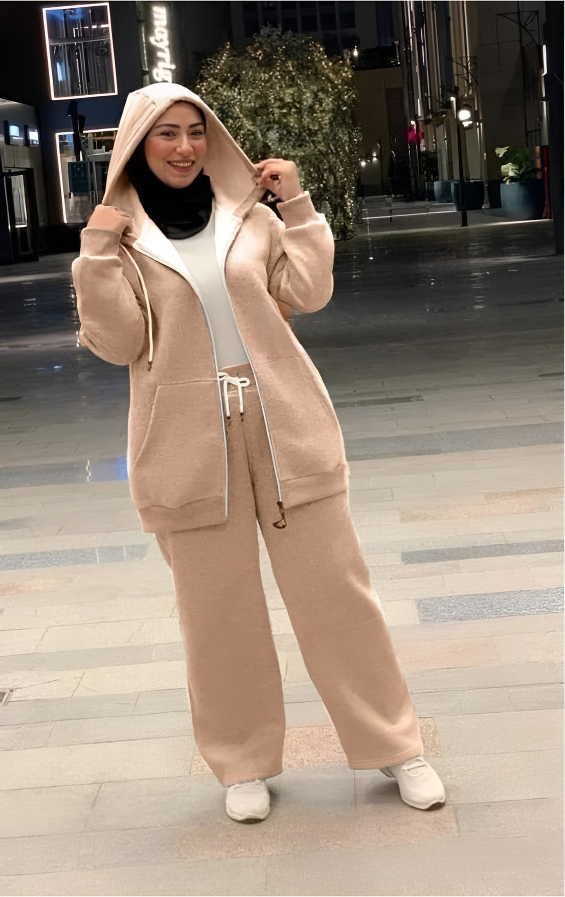 Elevate your look with this two-piece set designed for effortless style and comfort. Crafted from premium fabric that feels soft and durable. The zip-up jacket adds a modern, sporty edge with practical ease. Perfect for daily wear, travel, or casual outings. A balanced blend of comfort, function, and fashion.