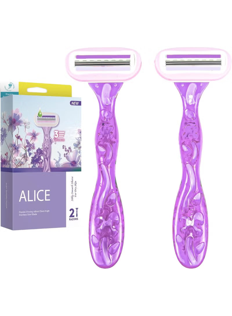 اليس ماكينة حلاقة للنساء - 2 ماكينة حلاقة للجسم - شفرات ثلاثية من الفولاذ المقاوم للصدأ - رأس محورى - ماكينة للبشرة الجافة
