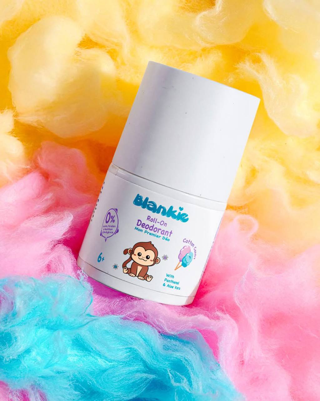حافظي على انتعاشك وثقتك بنفسك طوال اليوم مع مزيل العرق بلانكي برائحة غزل البنات (كوتون كاندي) مزيل العرق اللطيف المثالي لجميع أفراد العائلة، من الأطفال إلى الأمهات