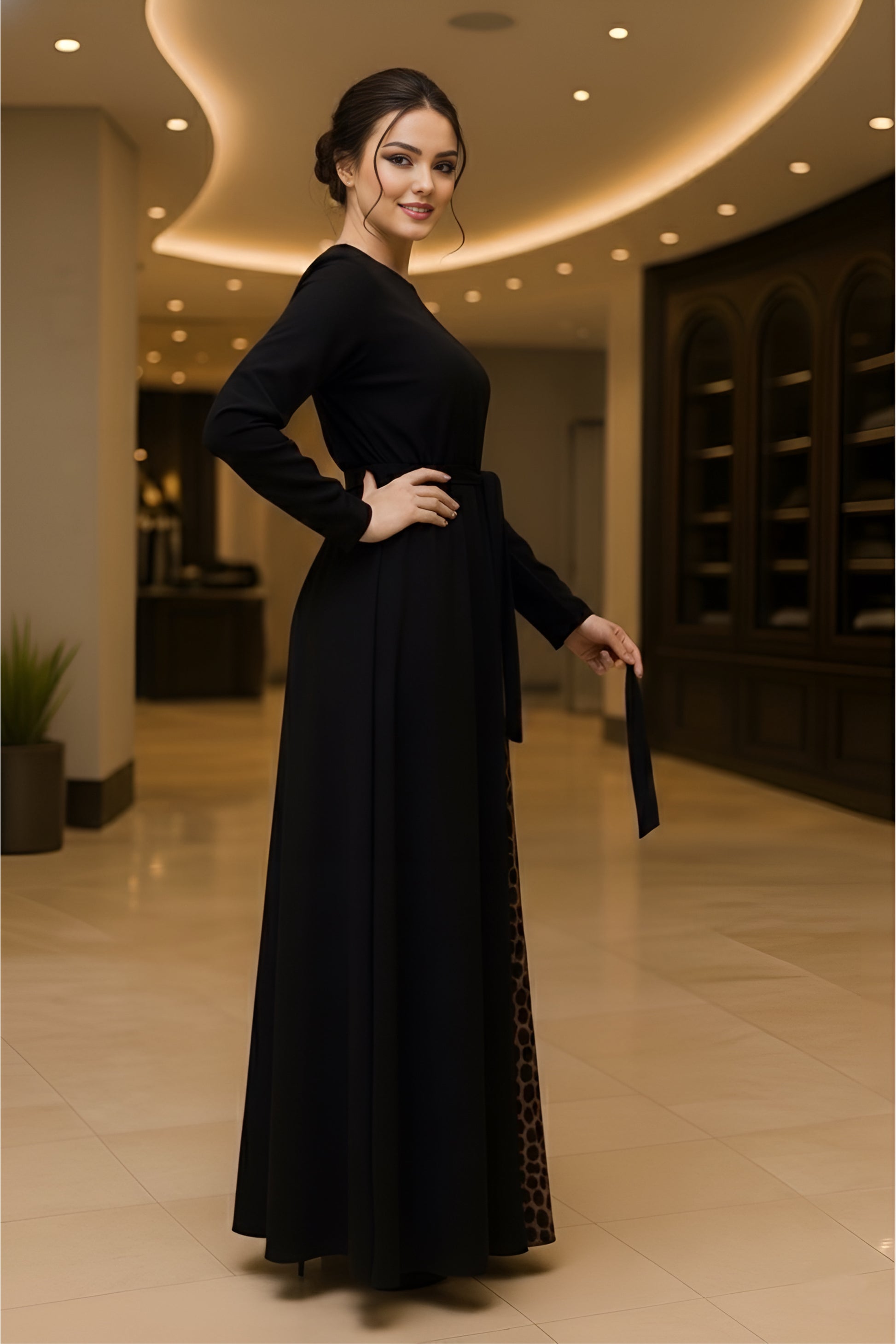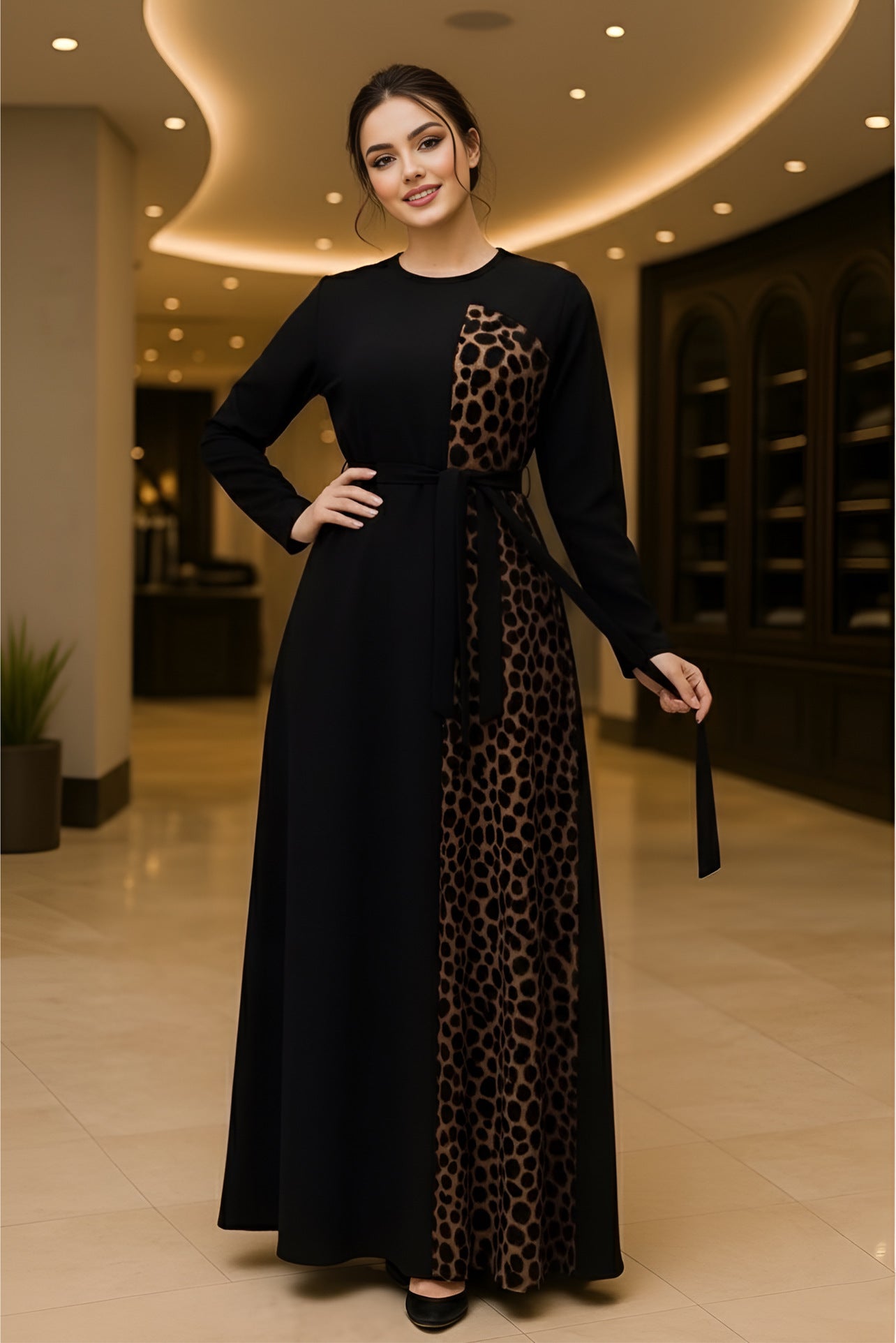 Elegant suede abaya with a bold tiger touch. Crafted from premium suede fabric for a soft and luxurious feel. Features a unique tiger-print panel that adds confidence and style. Perfect for evening outings and special occasions. A statement piece for women who love elegance with an edge.