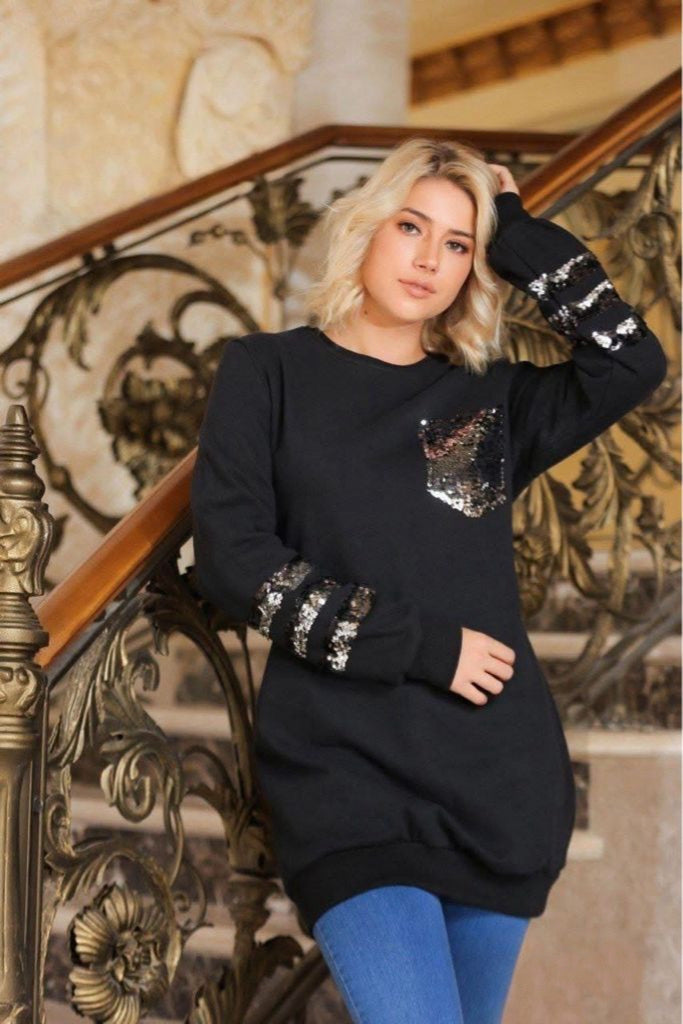 Step up your winter look with our imported Milton round-neck tee. Designed with sparkling rhinestone sleeves and a chic pocket accent. Soft, warm, and effortlessly stylish for any outing. Perfect blend of comfort and a touch of glamour. Where cozy meets sparkle in every detail.